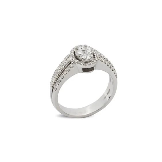 Anello oro bianco 18 kt “ovale con cornice e doppio gambo ” con diamanti bianchi
