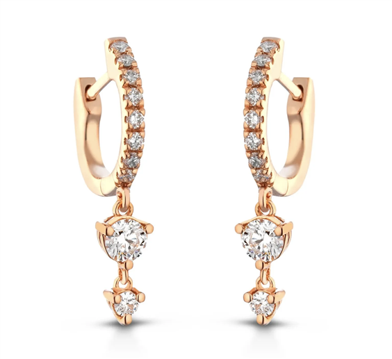 ORECCHINI CERCHIETTO IN ORO ROSA CON DIAMANTI E PUNTO LUCE PENDENTE