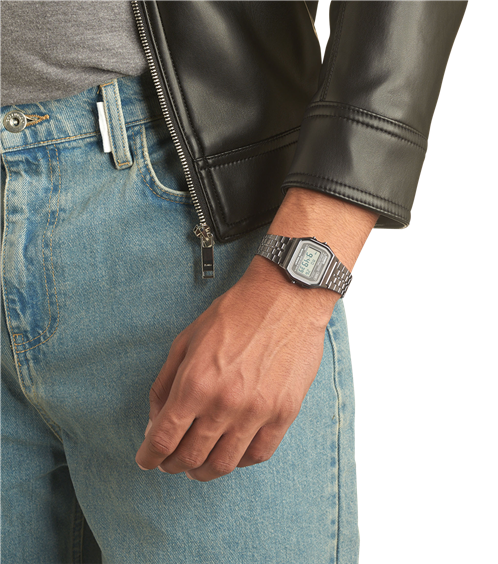 • Cronometro da centesimi di secondo • Luce LED • Cinturino in acciaio inossidabile color antracite con finitura lucida • Impermeabile • Quadrante squadrato - finitura a specchio