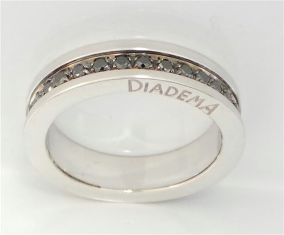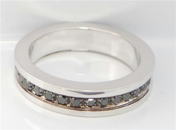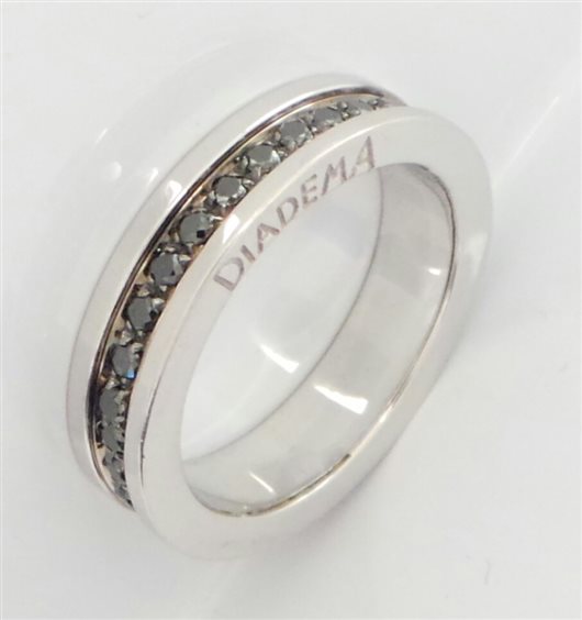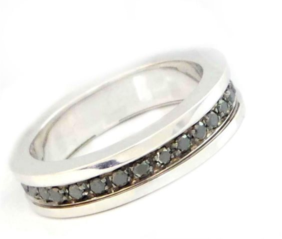 anello in oro bianco 18 kt, con diamanti taglio brillante neri 0,63 ct, con elemento centrale scorrevole