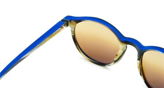 MONTATURA ESTERNA CORNO INTERNA BLU LENTI IN CRISTALLO POLARIZZATE MARRONE SFUMATO CON ANTIRIFLESSO BARBERINI