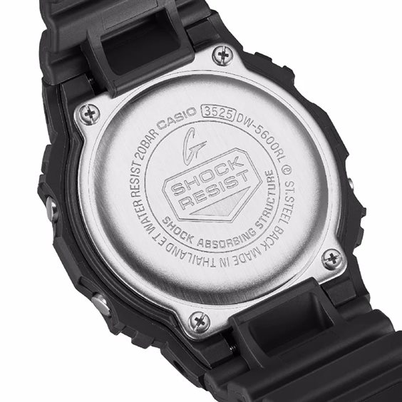 l modello DW-5600UE presenta la forma iconica del marchio di orologi G-SHOCK, sinonimo di robustezza e noto in tutto il mondo per la costante innovazione e l'instancabile ricerca della massima resistenza.