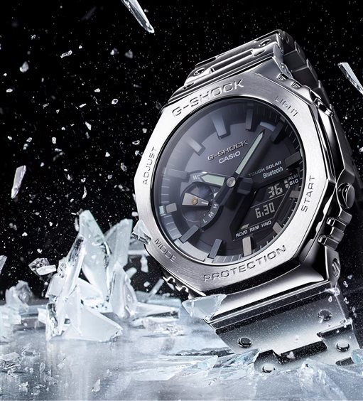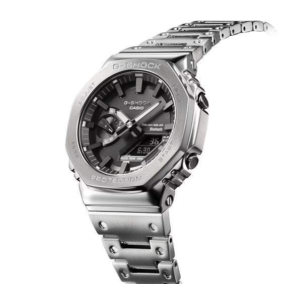 Bluetooth® Smart La speciale tecnologia Bluetooth® per il risparmio energetico garantisce lo scambio di dati a basso consumo con un semplice clic sull'apposito pulsante. Tramite Bluetooth® è possibile collegare l’orologio allo smartphone accedendo così ad una serie di funzioni utili desiderate. Smartphone time Se l'orologio è accoppiato allo smartphone, l'ora viene regolata automaticamente e visualizzare l'ora corrente in modo da tutto il mondo. Super illuminazione Antiurto Funzione solare Le celle solari alimentano l'orologio in modo autonomo ed ecologico. L'energia solare in eccesso viene salvata in una batteria. Neobrite Le lancette e/o le cifre hanno un rivestimento fluorescenti e si illuminano al buio dopo lo spegnimento di una fonte luminosa Funzione ora mondiale Cronometro - 1/100 sec - 24 ore Timer - 1/1 sec. - 24 ore 5 allarmi giornalieri Attivazione/disattivazione del suono dei tasti Funzione di spostamento delle lancette Ricerca telefono Non trovate più lo smartphone? Basta premere un pulsante dell'orologio e lo smartphone emette un segnale acustico. Indicazione del giorno settimanale in parecchie lingue L'indicazione del giorno settimanale può essere selezionata in diverse lingue. Calendario automatico Formato 12/24 ore. Vetro minerale Cassa in acciaio inox trattamento al carbonio finitura IP acciaio Bracciale in acciaio inox trattamento al carbonio finitura IP acciaio Classificazione di impermeabilità (20 bar) Perfetto per l'immersione in apnea senza attrezzatura: l'orologio è impermeabile fino a 20 bar (ISO 22810). Dimensioni (A x L x P) 48,6mm x 45,5mm x 11,9mm Peso ca. 52 g
