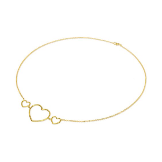 CHOKER IN ORO 9KT CON CUORI DIMENSIONE: COLLEANA 35 CM E PENDENTE 3 CM DIMENSIONE CUORE PICCOLO: 1*0.7 CM DIMENSIONE CUORE GRANDE: 1*1.7 CM