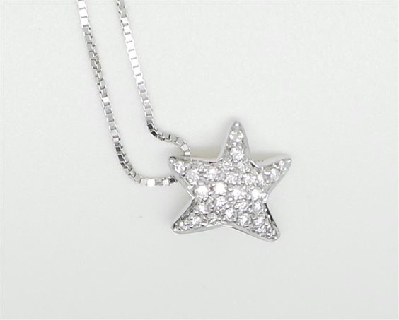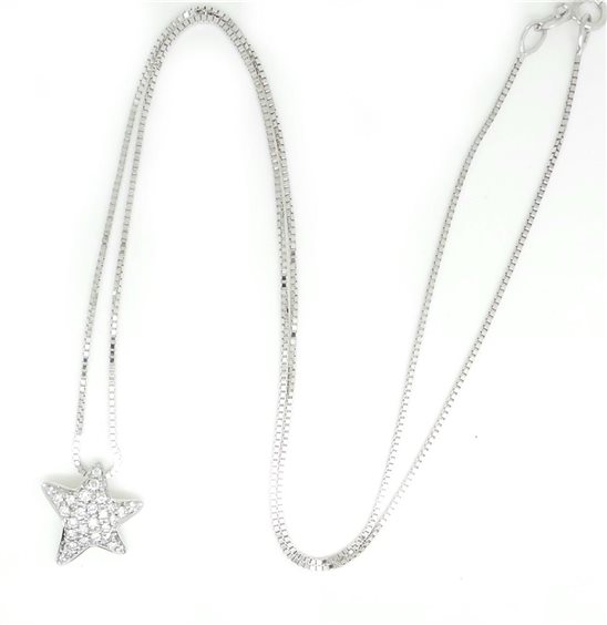 Collana in oro bianco 18 kt, con diamanti IFG 0,20 ct., lunghezza catena totale 40 cm