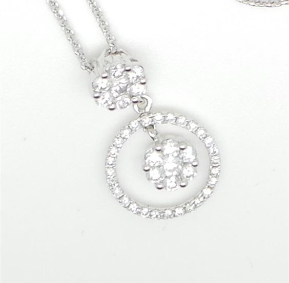 collana in oro 18 kt con pendente in diamanti taglio brillante VSG 0,47 ct, lunghezza totale catena 40 cm.