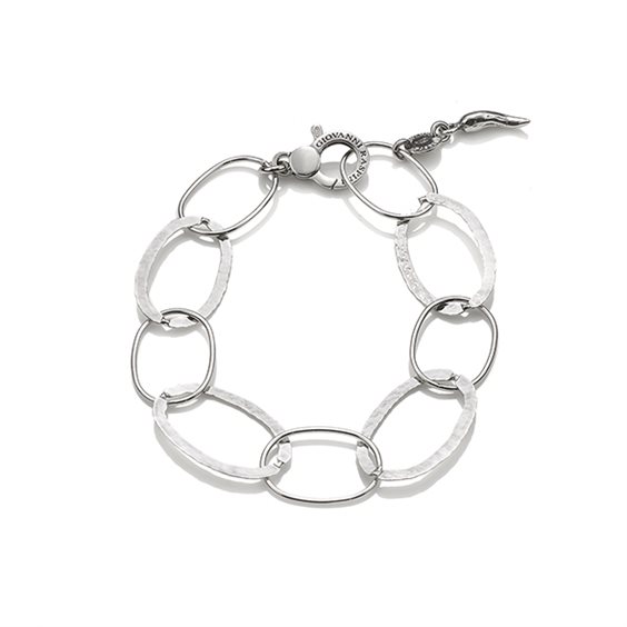 Bracciale Maglia Ovale Alternata Un bracciale in argento che alterna due tipi di maglie ovali artigianali, leggere e luminosissime. Contemporaneo e di grande personalità. Legami infiniti di bellezza.