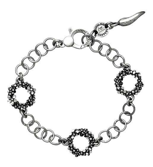 Il Bracciale Millefiori Piccolo deve la sua grande luminosità alla tecnica della "diamantatura", che conferisce ai minuscoli e graziosi petali in argento un effetto scintillante, in contrasto con la base brunita. Eleganza leggera da indossare al polso.