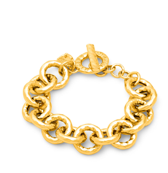 BRACCIALE PUEBLO Tutto il fascino della fusione a cera persa in un bracciale a maglia tonda in bronzo dorato con finitura martellata. Luminosa e materica, questa creazione conquista con le sue calde cromie e la chiusura a T-bar. Un gioiello fatto a mano, simbolo dell’eleganza e della maestria artigianale di Giovanni Raspini.