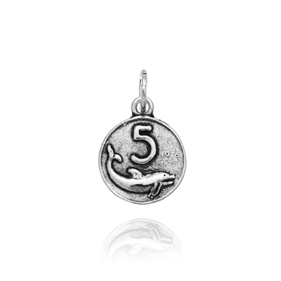 Charm Moneta Lire 5. Altezza cm.2,70 (esclusa maglina con logo cm.0,90).