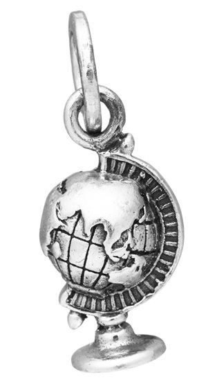 Charm Mappamondo. C'è chi lo tiene sulle spalle, chi lo getta in aria e chi ci sogna davanti. Altezza cm.2,40 (esclusa maglina con logo cm.0,90).