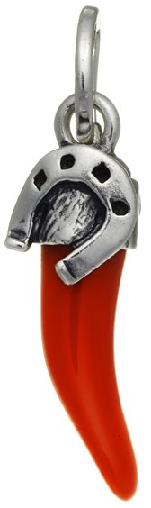 Charm Cornetto Rosso in metacrilato con Ferro di Cavallo, munito di maglina con logo.