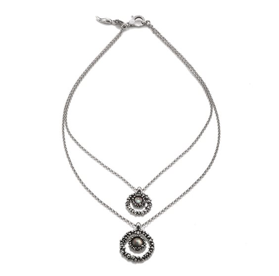 Delicati cerchi di sferette d'argento incorniciano due madreperle doppiate con il quarzo e danno vita a questa collana a doppio pendente. I riflessi cangianti rosa, verdi e cilestrini ricordano i colori dell'alba riflessa sull'oceano, ispirazione della Collezione Maui. Sofisticata e versatile, questa collana è perfetta per tante diverse occasioni.