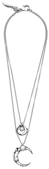 COLLANA DOUBLE IN ARGENTO 925 CON PENDENTE LUNGA CM42 CON INSERTO PERLA. GANCIO CON CORNETTO SCARAMANTICO