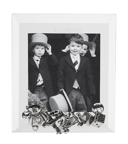 cornice in cristallo e argento. supporto e soggetto giochi in argento. Dimensione 12 X 14 cm
