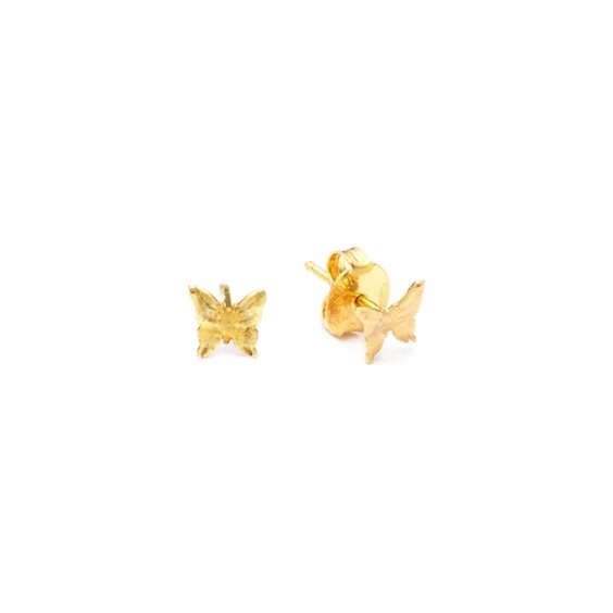 Realizzati a mano dai nostri artigiani, questi mini orecchini sono creati per chi ama la luce calda ed elegante dell'argento dorato. Una mini farfalla da portare sempre con sé. Argento 925 in bagno d'oro Peso singolo orecchino 0,5 gr Chiusura con farfallina Fatto a mano in Italia