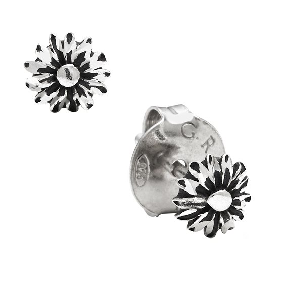 Orecchini Mini Margherita Luce. Piccoli e minimali in cui il decoro naturalistico è l'unico protagonista. La margherita d'argento in fusione, diamantata a mano petalo per petalo, dà vita a questi elegantissimi orecchini. Bellezza e luce assoluta da indossare. Realizzati completamente a mano in azienda.