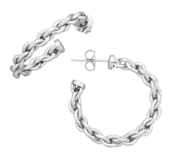 Orecchini Cerchio Catena Medi. Per una donna che ama la bellezza dell'unicità, Giovanni Raspini propone questi eleganti orecchini a cerchio in argento fuso a cera persa. La forma di questi orecchini si ispira ad una catena classica, ma con effetto rigido. Fatti a mano in azienda. Per una donna che ama la bellezza della semplicità.