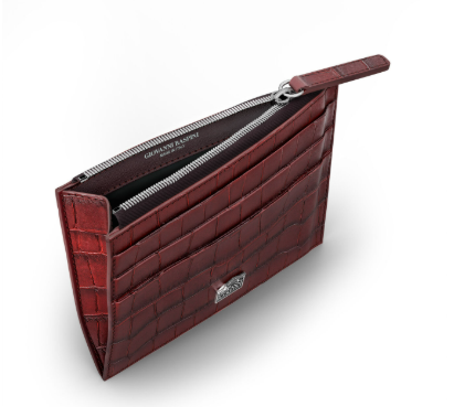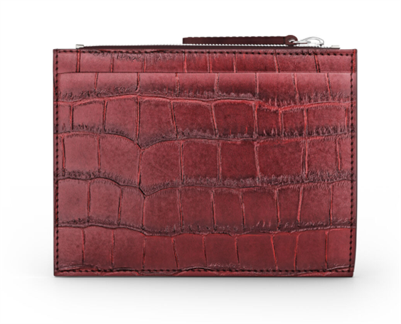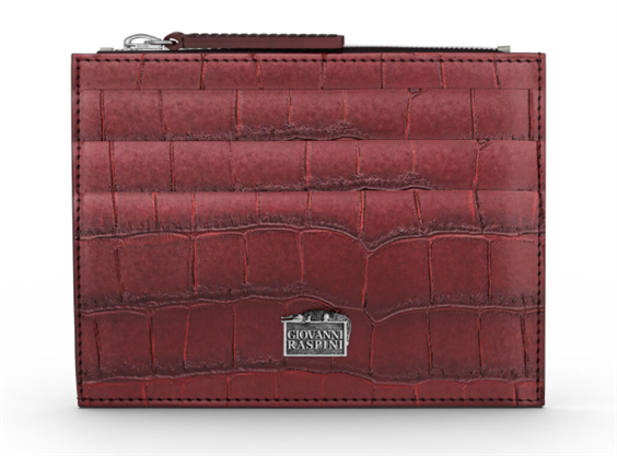 PORTACARTE CON ZIP PELLE CROCO BORGOGNA