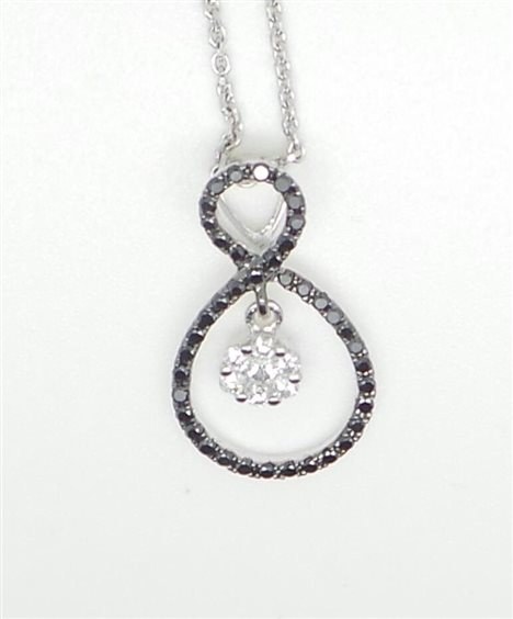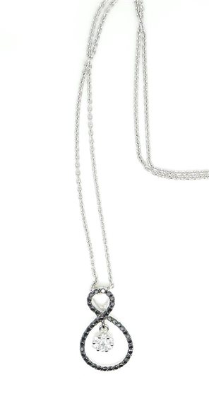 collana in oro binco 18 kt, con pendente in diamanti taglio brillante bianchi VSG 0,10 ct e neri 0,18 ct