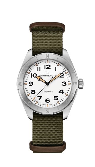 Preparati per un’avventura all’aria aperta con il Khaki Field Expedition, un orologio ideale per tutte le attività outdoor con un design a bussola, che ti permetterà, durante le escursioni, di orientarti con l'aiuto del sole. Racchiuso in una cassa in acciaio da 41 mm corredata da un cinturino in pelle marrone, questo orologio è dotato di corona a vite per proteggere il movimento in qualunque condizione atmosferica. Dotato di un quadrante bianco testurizzato con rivestimento in Super-LumiNova per una leggibilità eccezionale, il Khaki Field Expedition possiede tutta la robustezza di cui hai bisogno. Dotato di movimento a tre sfere con data e riserva di carica superiore di 80 ore, l'H-10 presenta elaborati motivi colimaçon e perlati a contrasto per i modelli American Classic e superfici pulite per gli orologi da pilota.