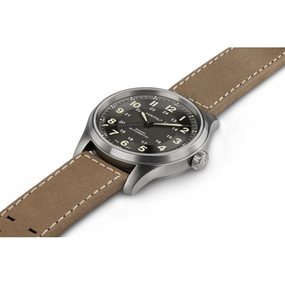 Per oltre un secolo, Hamilton ha prodotto migliaia di orologi destinati alle forze armate. Oggi, è proprio a questa esperienza che attingiamo per creare segnatempo adatti alla vita moderna. Perfetta combinazione di funzionalità, leggerezza e stile militare, il Khaki Field Titanium Automatic è pronto all’azione. MOVIMENTO: H-10 Movimento a tre sfere con data e riserva di carica superiore di 80 ore, l'H-10 presenta elaborati motivi colimaçon e perlati a contrasto per i modelli American Classic e superfici pulite per gli orologi da pilota.