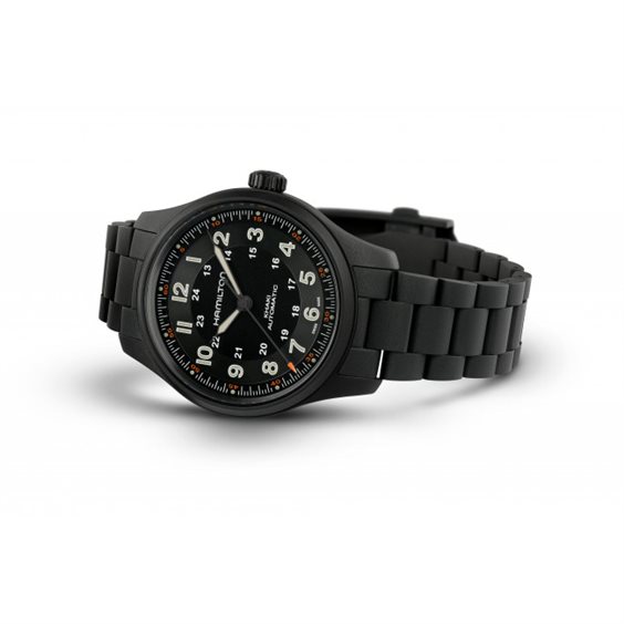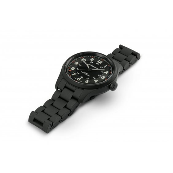 HAMILTON KHAKI FIELD TITANIUM AUTO 42 mm H70665130 L' Hamilton Khaki Field Titanium Auto H70665130 con cassa e bracciale in titanio, entrambi con finitura PVD nera , è un orologio estremamente versatile che può essere indossato in qualsiasi occasione. Il suo quadrante nero con leggibilità ottimizzata ti terrà in movimento in qualsiasi avventura, mentre il suo bracciale ha una finitura spazzolata che aggiunge resistenza e carattere al suo design militare. Combinando funzionalità leggera con stile militare, il Khaki Field Titanium è il tuo compagno affidabile mentre insegui nuove avventure. All'interno della cassa, il movimento meccanico svizzero Hamilton H-10 (basato sull'ETA C07.611 costruito sull'ETA 2824-2) ticchetta in modo affidabile con carica automatica. Funziona a una frequenza di 21.600 semi-frequenze all'ora, ha 25 rubini e, cosa più importante, una riserva di carica estesa di 80 ore . Il funzionamento della macchina può essere osservato attraverso un quadrante trasparente. Il movimento ha anche una funzione di "hacking " e la possibilità di carica manuale con la corona. La spirale di questo movimento è realizzato in lega Nivachron , che è più resistente ai campi magnetici e agli sbalzi di temperatura, garantendo una migliore precisione dell'orologio. La cassa in titanio dell'orologio è completata da un movimento in titanio ben realizzato con una chiusura pieghevole dotata di microregolazione. Il modello si distingue per la sua eccellente leggibilità e la facile chiarezza, che è richiesta negli orologi militari. Il quadrante, che nella sua forma non nega il modello militare, è protetto da un vetro zaffiro . Il vetro zaffiro è un grande vantaggio negli orologi in quanto è quasi impossibile da graffiare. Le lancette e i numeri sono rivestiti con un composto luminescente Super-luminova , che garantisce una luminosità più duratura. Il diametro della cassa di 42 mm rende l'orologio indossabile per la maggior parte dei polsi maschili. La resistenza all'acqua dell'orologio è di 100 m (10 ATM) , quindi può sopportare un maggiore contatto con l'acqua, come il nuoto.
