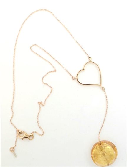 collana in oro rosa 18 kt, con cuore e murrina veneziana colore oro, chiusura a moschettone, lunghezza 40,3cm