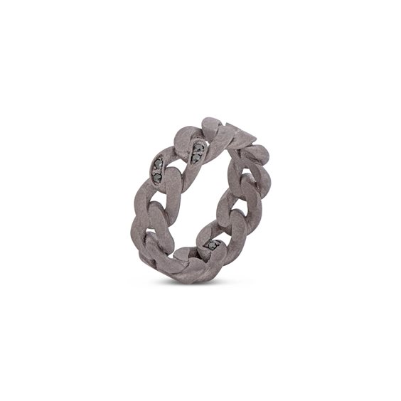 ANELLO MAGLIA GRUMETTE IN TITANIO CON ELEMENTO SINGOLO CON PAVE DI DIAMNTI NERI NATURALI