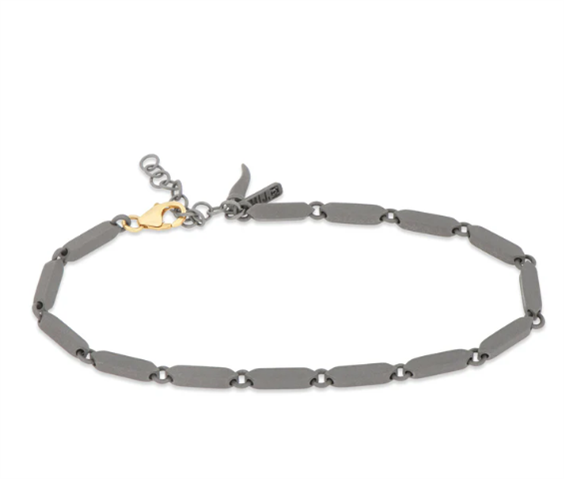 BRACCIALE TITANIO NAVETTE, MOSCHETTONE ORO GIALLO 9KT, CORNETTO PICCOLO TITANIO IL BRACCIALE HA ANELLINI DI PROLUNGA. FINITO 21 CM