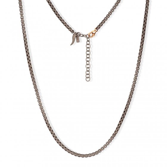 Collana uomo in titanio con chiusura in oro rosso 9 kt. La catena scooby doo è l'elemento principale del bracciale che termina con una preziosa chiusura a gancio in oro 9 kt e con un cornetto pendente. Un comodo e prezioso gioiello che per leggerezza e manifattura, permette massimo comfort e adattabilità.