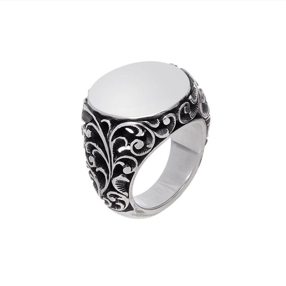 Anello maria luisa jewels anallo chevalier in argento brunito inciso a mano con piastra graffiata