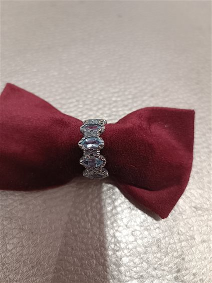 ANELLO IN ARGENTO INTAGLIATO CON 10 PIETRE NAVETTE VERTICALE TOPAZIO AZZURRO