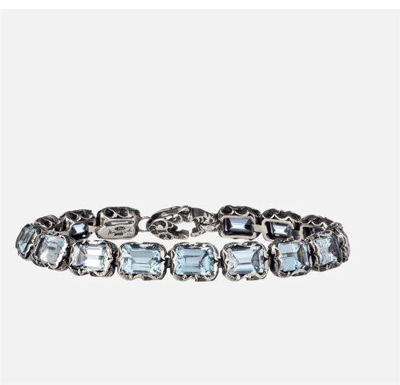 BRACCIALE TENNIS IN ARGENTO INTAGLIATO CON 15 PIETRE TAGLIO SMERALDO (8*6) CRISTALLO DI ROCCA