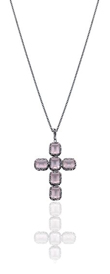 Collana con pendente Croce cesellato a mano, con cristallo di rocca interno.