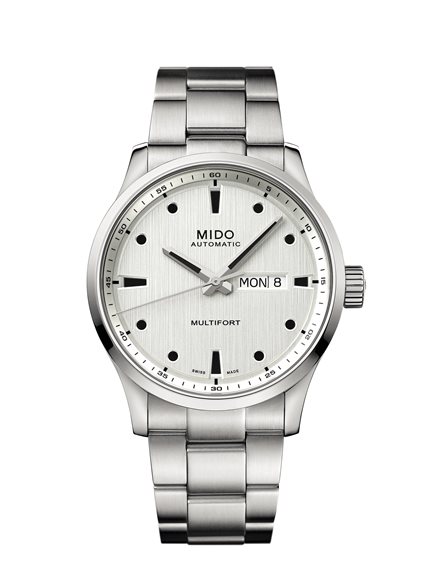 Sul quadrante sfumato del Multifort M, una finitura satinata verticale richiama le Côtes de Genève caratteristiche della collezione. L’Immacolato Super-LumiNova® crea contrasto e leggibilità sulle lancette e sugli indici rotondi. La leggendaria robustezza del Multifort batte al ritmo del famoso Calibro 80. La sua riserva di carica fino a 80 ore è abbinata a una spirale in Nivachron™, un materiale rivoluzionario che offre una formidabile precisione. Mido propone il Multifort M con sistema di cambio cinturino senza attrezzi, in versione acciaio o tessuto su base gomma.