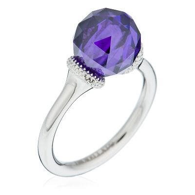 Anello in acciaio, ametista, anello a filo tondo, terminali zigrinati. numeri disponibili 14,16