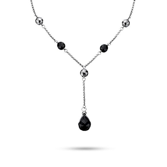 Collana donna in acciaio 316L , girocollo maglia rolò , lunghezza cm 42 , pendente cm 6 , onice nero sfaccettato. Immagine indicativa , la confezione può variare in forma e colore.