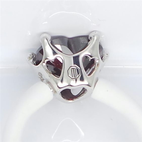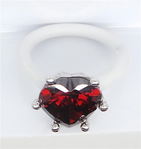 Anello moda con castone in argento, traforato a cuore, quarzo naturale taglio a cuore 18mm X 12mm , gambo in silicone con possibilità di essere cambiato anche di colore e accorciato per qualsiasi misura.