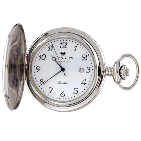OROLOGIO DA TASCA SAVONETTE UOMO, MOVIMENTO AL QUARZO, NUMERI ARABI, VETRO IN PLASTICA, CATENA IN DOTAZIONE.