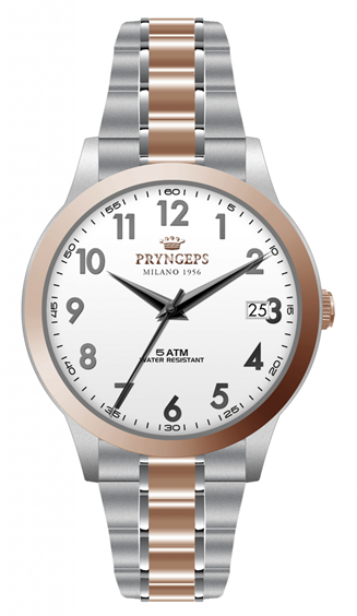 Acciaio bicolore diametro 33 mm, corona serrata a vite personalizzata, vetro minerale, fondello acciaio, Spessore della cassa mm 9,85