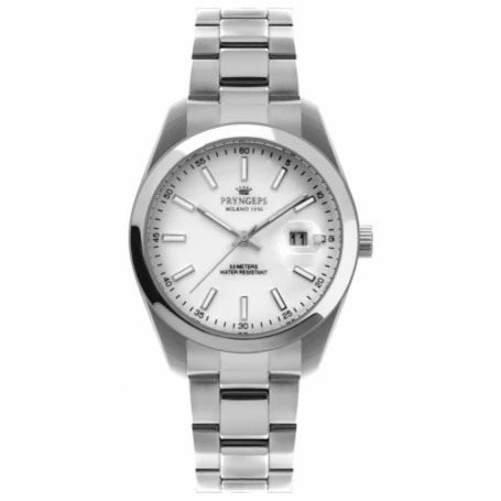 Orologio in acciaio diametro 38 mm, vetro minerale, bracciale acciaio con chiusura deployante e doppia sicura, water resistant 5 atm