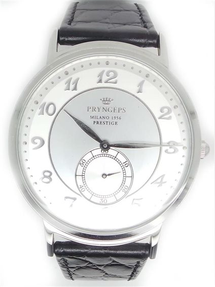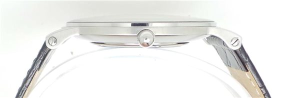 orologio in acciaio diametro 40mm, ultapiatto, numeri applicati su quadrante ghiaccio, quadrante secondi al 6, cinturino pelle con chiusura ardiglione personalizzata, movimento quartz, water resistant 5 atm