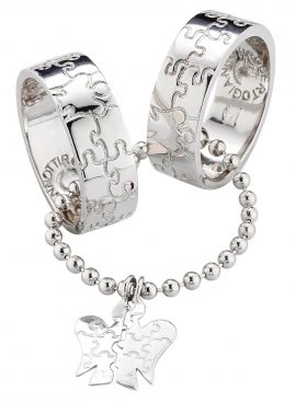 Coppia di anelli in argento 925, con incisi degli angeli, misure 13 e 19.