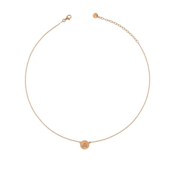 Girocollo Iniziale Zirconi Bianchi. Lettere disponibili: A, B, C, D, E, F, G, H, I, J, K, L, M, N, O, P, Q, R, S, T, U, V, W, Y, X, Z Finitura disponibile: Placcatura oro rosa 18kt Materiale: Argento 925 e Zirconi Bianchi Taglia: Unica, 40 cm + 5 cm