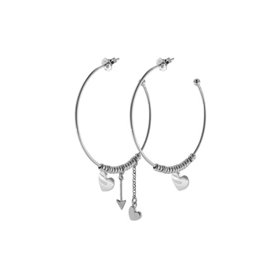 Orecchino a Paio Cerchio Cuore/Freccia/Micro Anelli Finitura disponibile: placcatura rodio Materiale: Argento 925 Diametro: 4 cm
