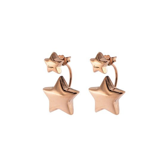 Orecchini a Paio Stella con doppia stella. Lavorazione bombata stile anni 80. Finitura disponibile: Placcatura oro rosa 18kt Materiale: Argento 925 Altezza: 2,5 cm