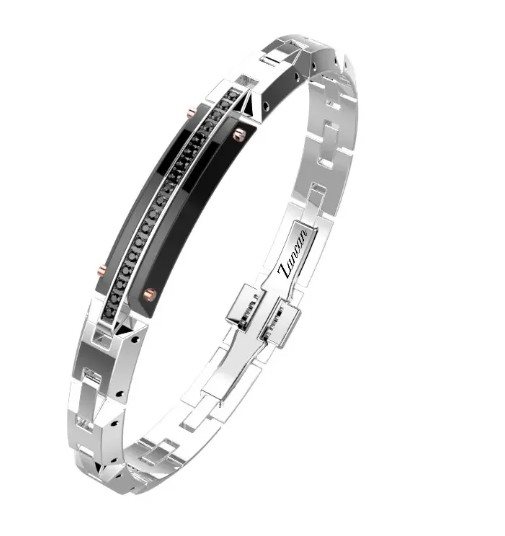 Bracciale Zancan da uomo, in acciaio 316L con maglia a catena con placca centrale in PVD Nero impreziosita da Spinelli Neri e da quattro Viti in PVD rose gold, della collezione "Hi-Teck". Lunghezza Bracciale regolabile da 19 a 21 cm.