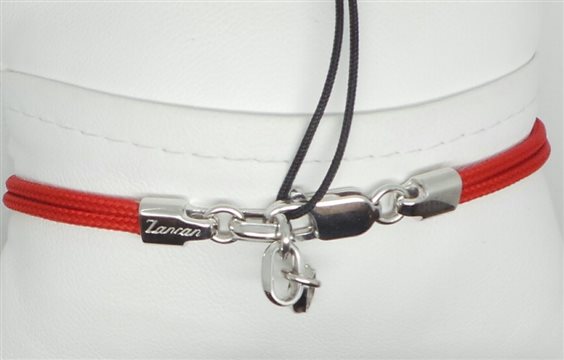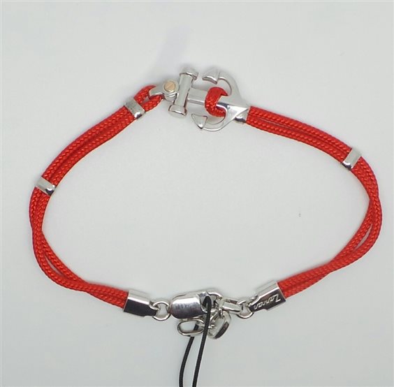 bracciale in argento e oro con chiusura regolabile a moschettone, lunghezza totale 21 cm, cotone cerato idrorepellente
