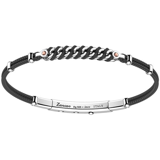 Bracciale da uomo in argento e kevlar gioielli Zancan. Questo braccialetto di Zancan appartiene alla collezione REBEL, ed il soggetto principale è il dettaglio a forma di catena groumette sulla parte frontale del bracciale, impreziosito da due viti in oro giallo. Bracciale in kevlar Inserto frontale in argento 925/000 dettagli sul centrale in oro 18 kt 750/000 oro giallo Chiusura regolabile in acciaio Lunghezza del bracciale regolabile a 20 cm , 21 cm e 22 cm chiusura in acciaio inox 316 L Made in Italy